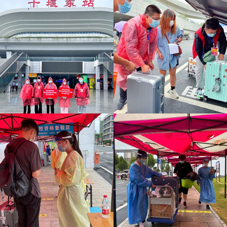 学校设置了返校专用通道,近120名志愿者坚守岗位,守好科教楼、药护学院2个校门,接好十堰火车站北广场、十堰东高铁站、武当山机场3个站点返校同学。青年教职工们也纷纷前来协助返校学生搬运行李,及时帮助学生解决问题。暖心的问候、贴心的叮嘱、细心的服务让学生倍感幸福,忍不住感慨“这是来自咱湖医药百分百的宠爱啊”。