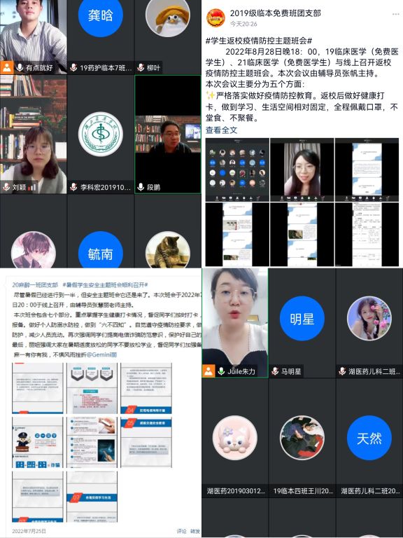 别样的课堂,一样的成长。8月29日我校正式开始线上课堂,学校暑期召开教学工作会暨秋季学期院务会,研究制定了《湖北医药学院线上教学工作方案》,确保各项教育教学工作按时、有序、保质、保量展开。全体校领导深入各学院、各校区开展期初教学督导。在云端,任课老师精神饱满、讲授精彩,同学们态度端正、积极互动。小陈同学表示:“线上教学是对自己自主学习能力的考验,我们要争做线上学习的‘自律小达人’”!