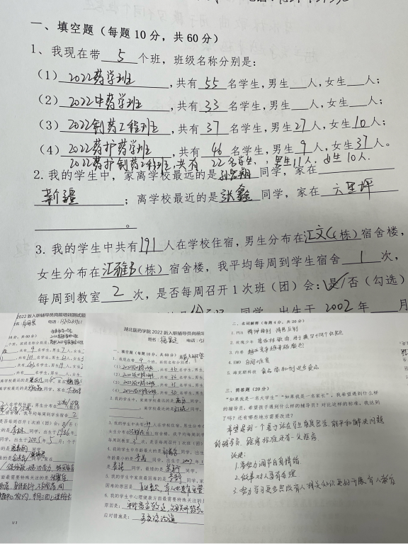 学工部长陈璞作为“主考官”为新入职辅导员带来一场特殊的培训测试,测试内容涵盖所带学生基本信息、所带班级基本情况、主题班会开展情况、2022年网络流行语名词解释、以及如何做好辅导员工作等,通过测试引导新入职辅导员掌握基本理论,明确工作目标。陈璞带领大家一起回顾了教育部43号令中辅导员的九大职责,并与辅导员进行现场交流互动,鼓励大家在新形势、新任务面前积极作为,锤炼过硬本领,主动担当作为,成为“全能战士”,以新时代好干部的标准做忠诚、干净、担当好党员,努力成为大学生成长成才的人生导师和健康生活的知心朋友。