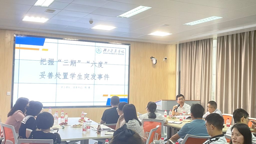 学工部长陈璞对我校第十届辅导员素质能力大赛难题进行解析,分析了全国全省辅导员素质能力大赛沿革和变迁,要求全体辅导员潜心育人实践,切实提升工作作风和能力素质。随后,他以“把握‘三期’‘六度’,妥善处置学生突发事件”为主题,从“事发处置程序及要点、前期处置程序及要点、善后处置程序及要点、把握好六个维度”四个方面深入阐释了学生突发事件预防与处置策略。