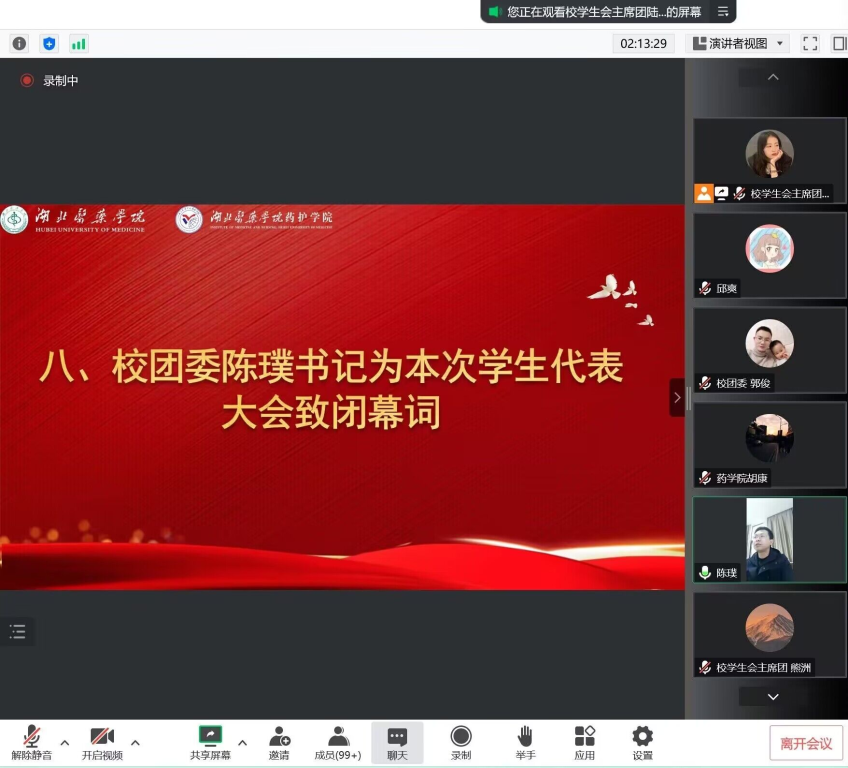 湖北医药学院第七次代表大会于2022年12月22日在腾讯会议召开,本次大会应到正式代表200名,实到正式代表197名。其中女生代表约占60%,党员代表(预备党员)约占9%。