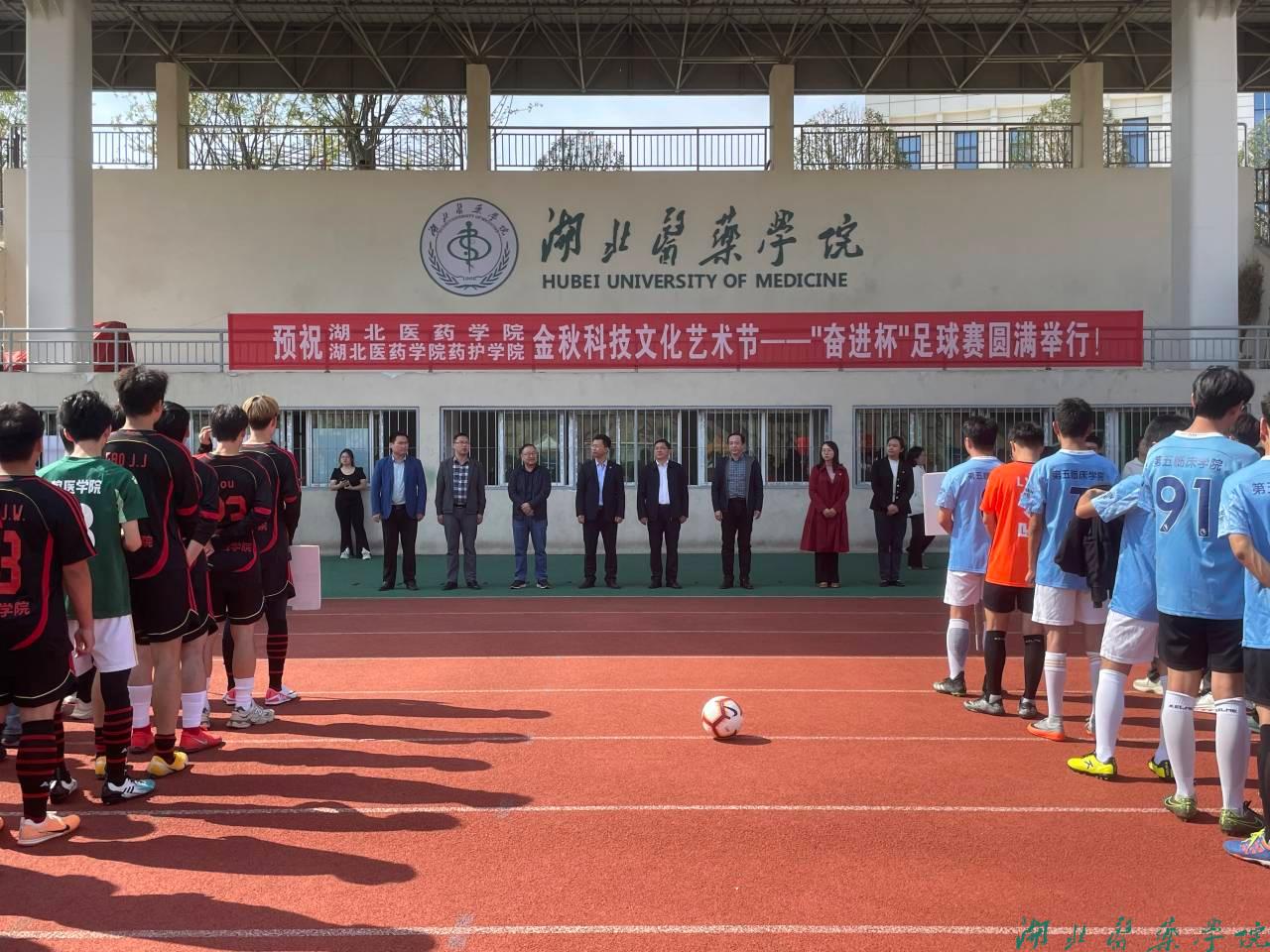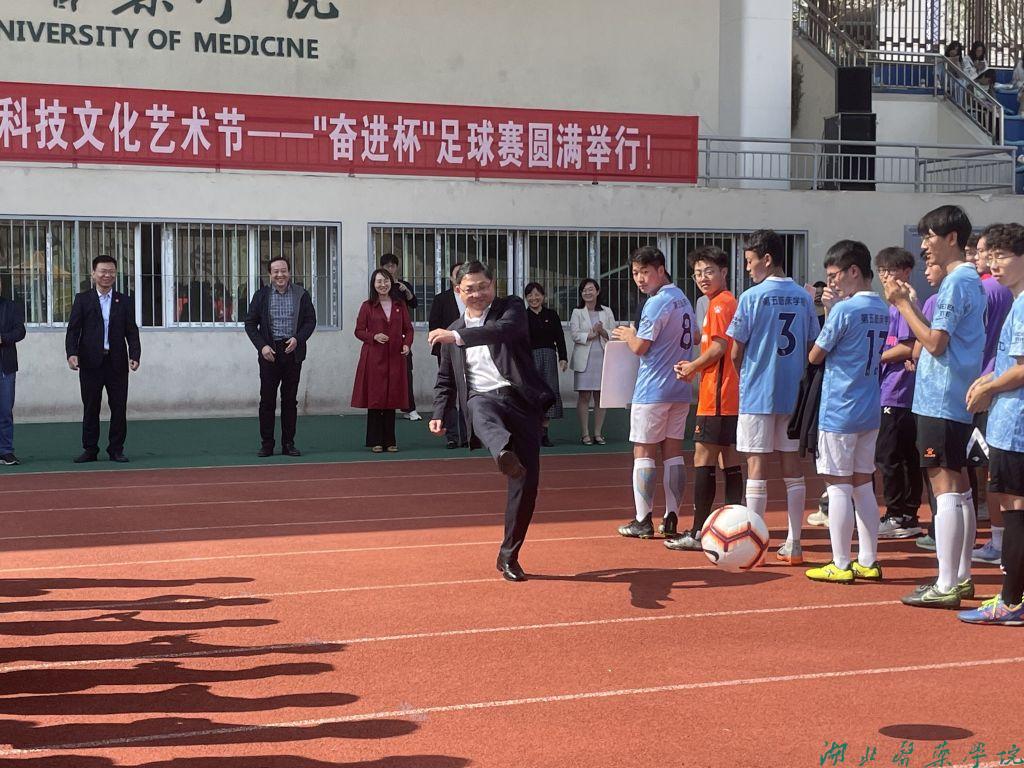 本网讯(通讯员 贾凯)10月24日,由党委学工部、团委主办,第二临床学院和校足球协会承办的第十二届金秋科技文化艺术节“奋进杯”足球赛在田径运动场举行开幕式。校党委常委、组织部部长张海蛟,党委学工部、校团委相关领导、各学院分管学生工作领导、分团委书记及全校10个参赛队伍参加了活动。