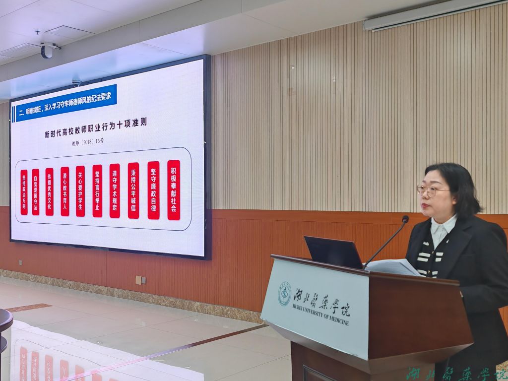 党委教师工作部部长轩辕秋艳以《亮规矩明底线切实加强学工队伍师德师风建设》为题做了辅导讲座,重点强调了加强师德师风建设的重要意义,深入学习守牢师德师风的纪法要求,并结合近年来教育部公开曝光的学工队伍师德失范行为典型案例进行警示教育。