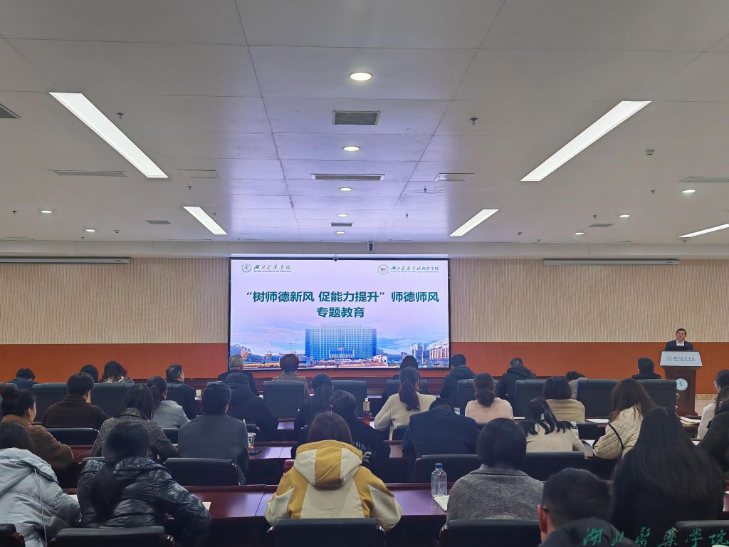 本网讯(通讯员 朱鹏)为进一步压实师德师风建设主体责任、营造风清气正的学工队伍职业环境,12月7日下午,校纪委、教师工作部、学生工作部联合开展“树师德新风 促能力提升”学工干部师德师风专题教育活动。学生工作部(处)、团委、资助中心、心理健康教育中心,各学院分管学生工作领导及全体专兼职辅导员、班主任参加了本次专题教育,党委常委、组织部部长张海蛟出席并讲话,活动由学生工作部副部长邱爽主持。