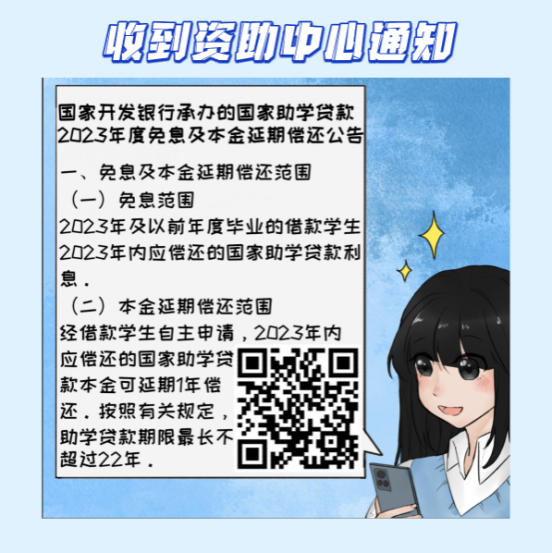 资助政策漫画说(六):国开行生源地贷款2023年度免息及本金延期偿还公告