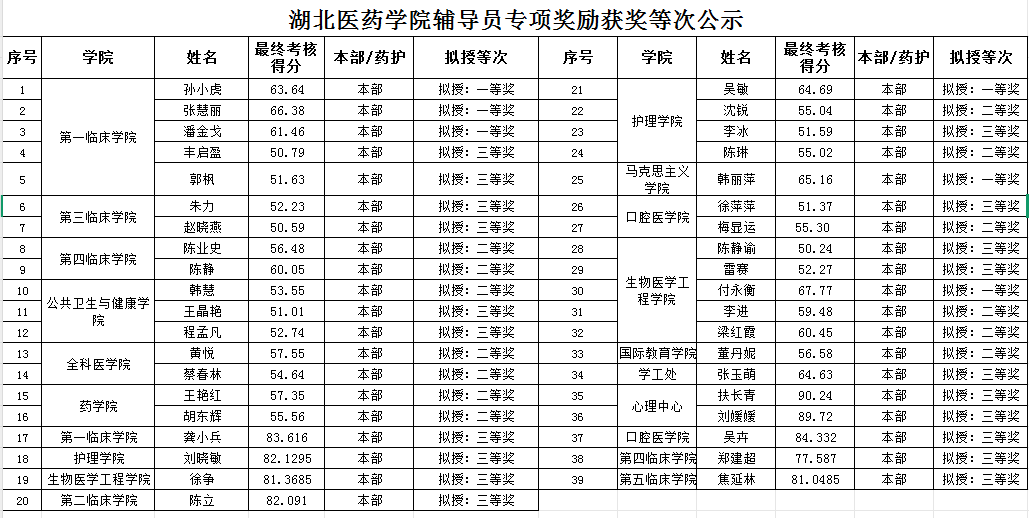 湖北医药学院2024-2025学年辅导员专项奖励结果公示