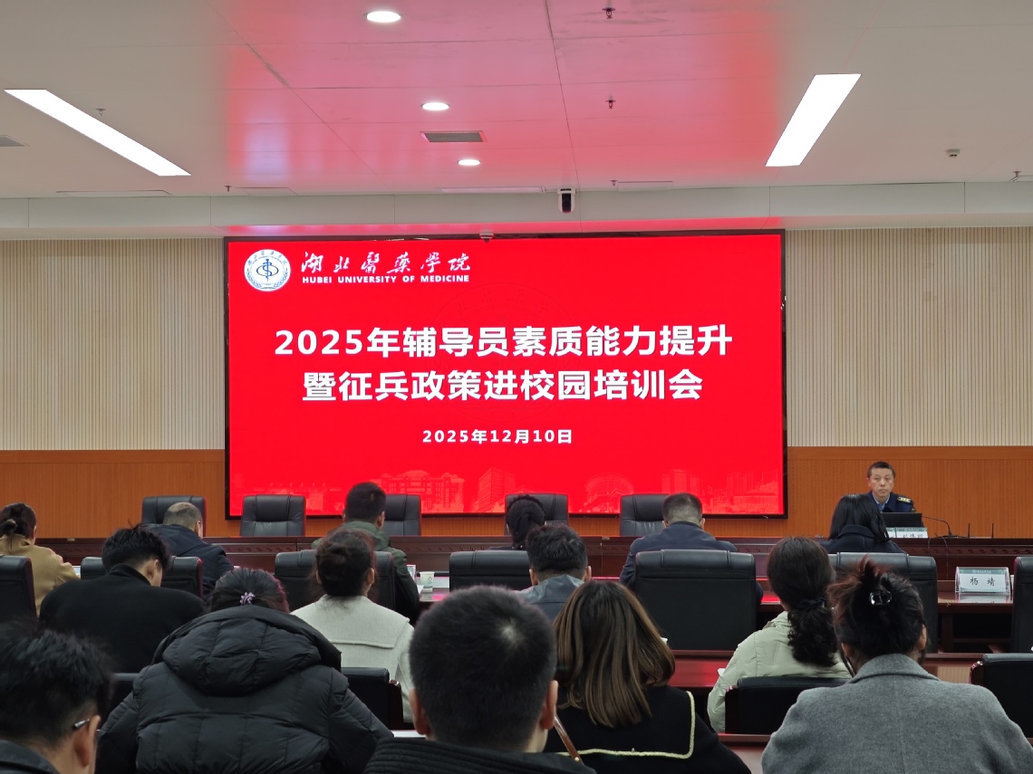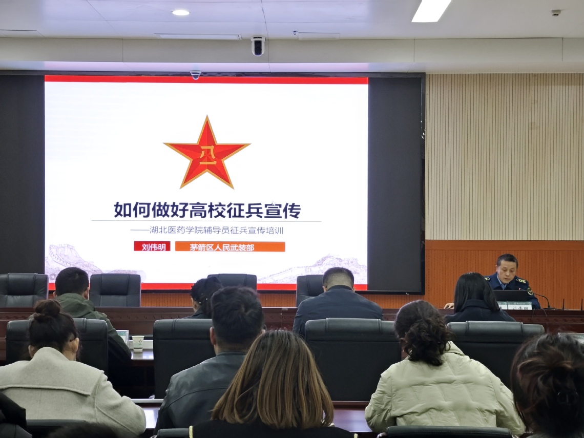本网讯(文/李良俊、王瑶瑶 图/周明显)为做好2026年学校征兵工作,强化辅导员对征兵政策的解读能力。12月10日下午,校武装部邀请茅箭区人民武装部刘伟明部长来校开展辅导员素质能力提升暨征兵政策进校园培训会。校学工部、武装部部门负责人,各学院分管学生工作副书记,全体专兼职辅导员参会。
