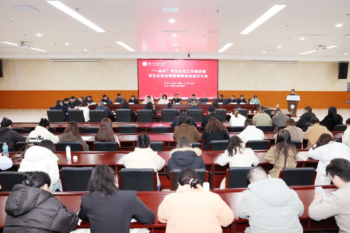 本网讯(通讯员 李海涛)12月4日下午,学校召开“一站式”学生社区工作推进会暨学生社区自我管理委员会成立大会,标志着学校社区管理从“建机制” 向 “提效能”全面升级。校党委常委、宣传部部长陈建龙出席会议并讲话,“一站式” 学生社区建设领导小组成员、各社区党工委负责人、全体学工干部及自管会学生代表参会。
